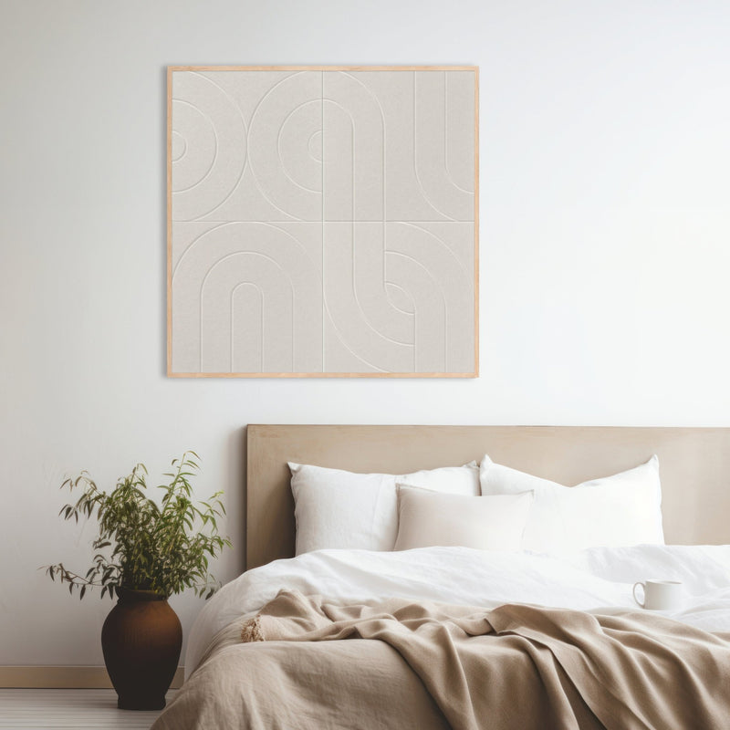 Elk akoestisch schilderij is ontworpen om visueel én akoestisch impact te maken. De subtiele diepteverschillen, zachte viltstructuren en hoogwaardige frames zorgen voor een luxe uitstraling die in elk interieur past — modern, Japandi, hotel chique of minimalistisch.