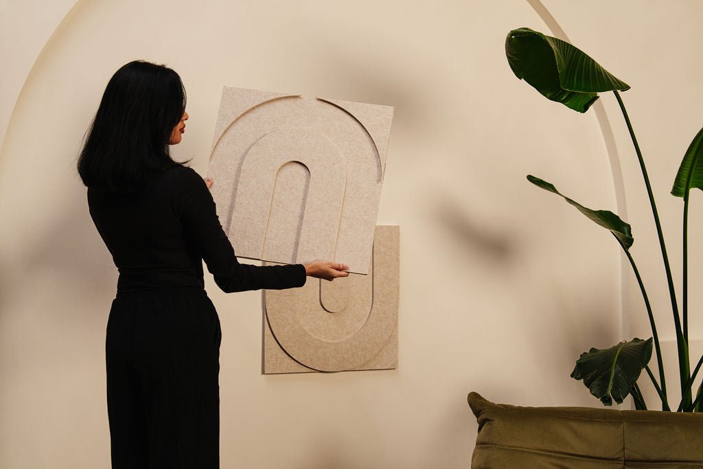 Felt panels are lightweight and flexible, making installation easier and faster. They can be easily attached to walls or ceilings without the need for heavy-duty structures. Thanks to their self-adhesive backing, installation is extremely simple and can be done by a DIY enthusiast without any tools. -