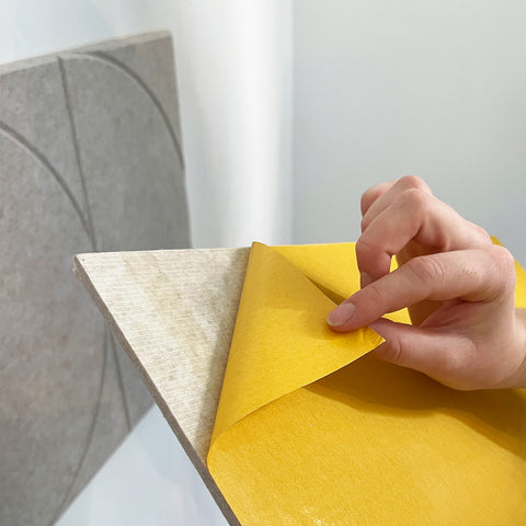 Les dalles acoustiques de Maeven Art sont autocollantes, vous n'avez donc besoin d'aucun outil. Il suffit de retirer le film et de les coller directement sur le mur ou le plafond.