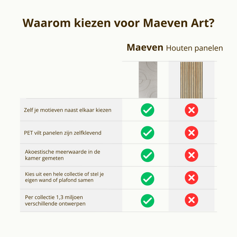 Les dalles acoustiques de Maeven Art sont autocollantes, vous n'avez donc besoin d'aucun outil. Il suffit de retirer le film et de les coller directement sur le mur ou le plafond.
