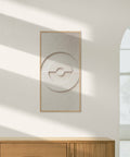 Cette œuvre allie symétrie et élégance dans une teinte douce et neutre. Les formes géométriques en relief créent un jeu d'ombres et de lumières qui évolue subtilement tout au long de la journée. Un tableaux acoustiques s'impose discrètement, tout en déterminant l'ensemble de l'espace. L'équilibre parfait entre sérénité et raffinement sensuel.