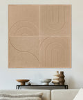 De reliëfstructuur en het spel van vorm en diepte zorgen voor een gebalanceerde uitstraling die past binnen zowel moderne interieurs als meer ingetogen woon- en werkruimtes. Het schilderij absorbeert storende reflecties en galm, zonder dat het technische karakter zichtbaar wordt. Wat je ziet is kunst - wat je ervaart is rust.